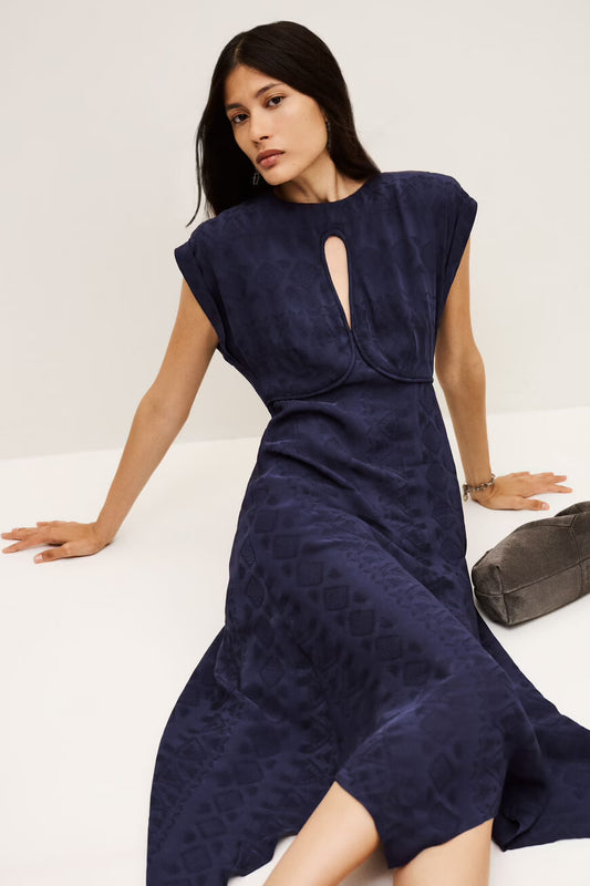 IšpardavimasINAIA asimetriška vidutinio ilgio suknelė