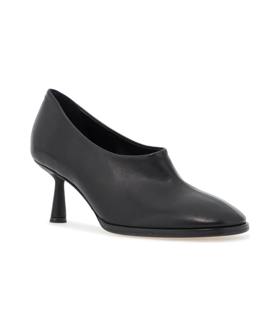 Aeyde juodi odiniai bateliai su kulnu – modernus ir elegantiškas modelis, išsiskiriantis švariomis linijomis ir subtiliu siluetu. Uždara forma su lengvai pailgintu priekiu suteikia batams architektūrišką, rafinuotą charakterį, tinkantį tiek dienos, tiek vakaro deriniams.