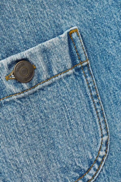 Dekoratyvinės sagos ir kišenės detalė suteikia modeliui subtilaus charakterio, o universalus džinso atspalvis leidžia lengvai pritaikyti prie skirtingų sezonų garderobo.
