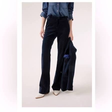 Kelnės su subtiliai platėjančiu „bootcut“ siluetu, kuris vizualiai ilgina kojas ir suteikia klasikinių proporcijų. Priekyje – užtrauktuko užsegimas ir kilpos diržui, šonuose – įstrižos kišenės, gale – kišenės su kanteliu. Pamušalas užtikrina komfortą ir gražų kritimą. Universalus modelis tiek kasdieniams, tiek labiau formaliems deriniams.