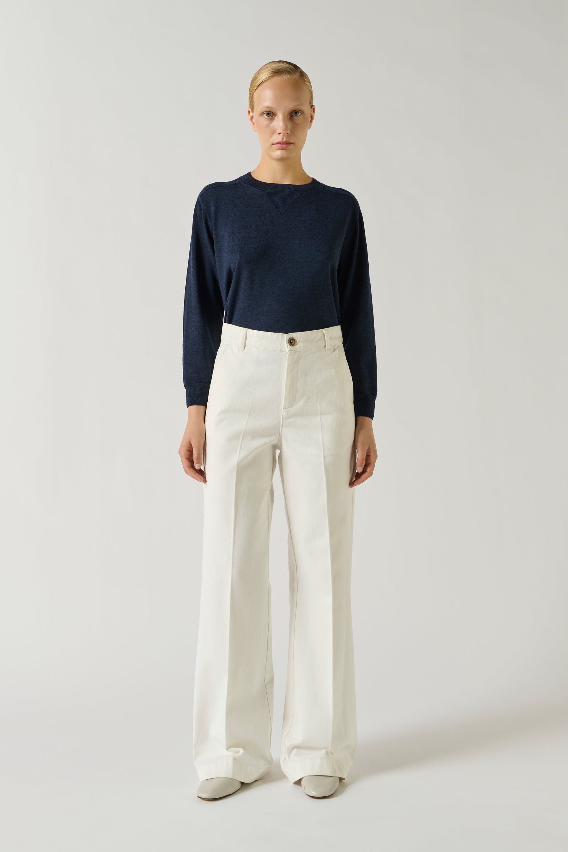 CALIFORNIA – tai laikui nepavaldūs, ikoniški Soeur džinsai su plačiu, platėjančiu kirpimu. Aukštas liemuo suteikia moterišką, vizualiai ilginantį siluetą. Ši versija pasiūta iš standesnio, tačiau lankstaus balkšvo džinso, užtikrinančio komfortą kasdieniam dėvėjimui.