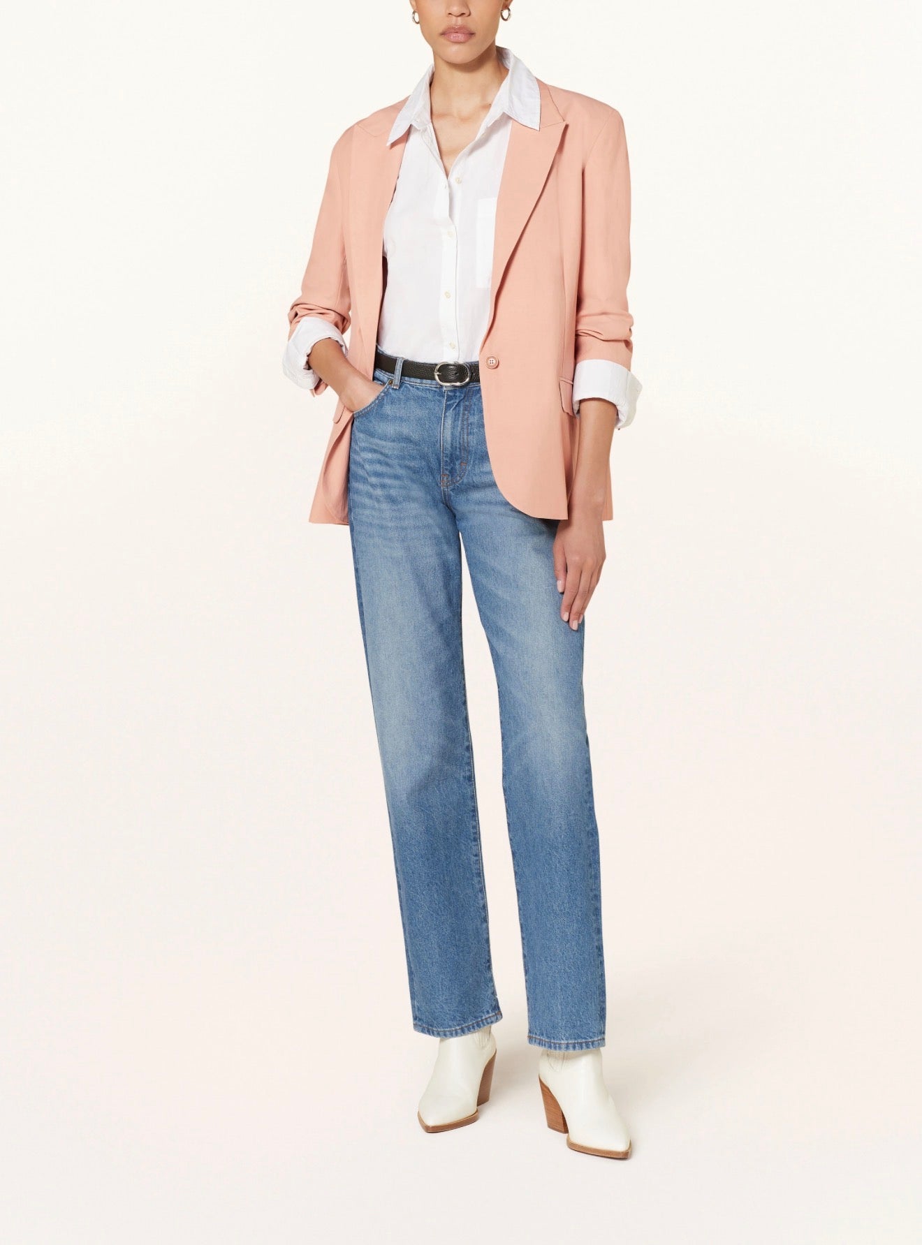 FEROY – elegantiškas, lengvai krintantis švarkas su subtiliai laisvu siluetu. Šoniniai kišenių atvartai suteikia struktūros, išlaikant lengvą ir rafinuotą įvaizdį. Šis modelis puikiai tinka dėvėti kaip kostiumo dalį su derančiomis kelnėmis, ant plonų petnešėlių viršaus ar marškinių. Taip pat – puiki alternatyva suknelei vestuvėms ar ypatingai progai. Kasdienai lengvai derinamas su džinsais ar suknelėmis, suteikiant stiliaus akcentą.