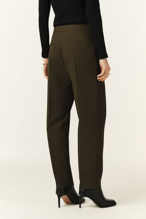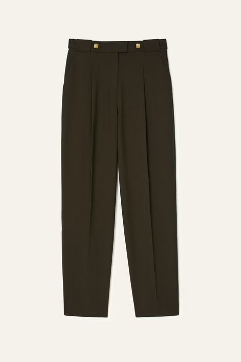 Elegantiškos, tiesaus silueto kelnės su subtiliomis klostėmis priekyje, kurios suteikia struktūros ir vizualiai ilgina kojas. Minimalistinis dizainas ir švari liemens linija leidžia lengvai derinti tiek su klasikiniais švarkais, tiek su laisvesniais mezginiais ar palaidinėmis. Elastingas audinys užtikrina komfortą visą dieną.